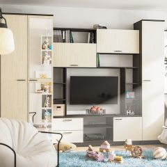 Гостиная Марта – это отличное решение для меблировки гостиной. Тёплые оттенки сделают атмосферу гостиной уютной. Кроме того, гостиная Марта содержит все необходимые модули. Шкаф, полки, ящики и нишу для одного из главных элементов — телевизора. Зеркало в полный рост визуально расширит пространство. Множество расцветок на выбор.