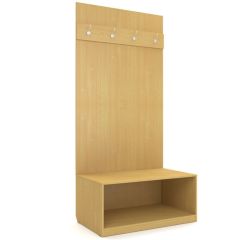 Вешалка навесная Гм.ПР-1 серии Проспект выполенена из ЛДСП толщиной 16 мм, комплектуется крючками для одежды и открытой тумбой для обуви и личных вещей.